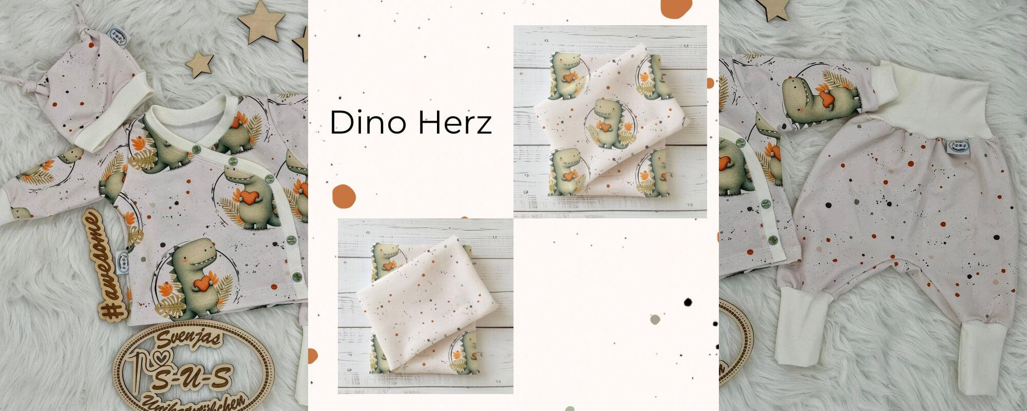 Herzensdino | Dino Stoff Meterware | Kinderstoff